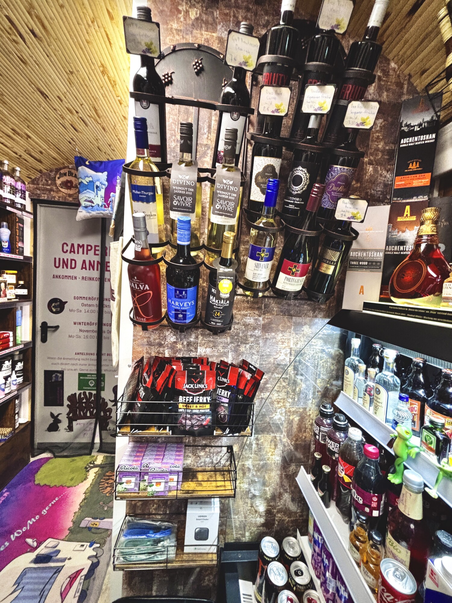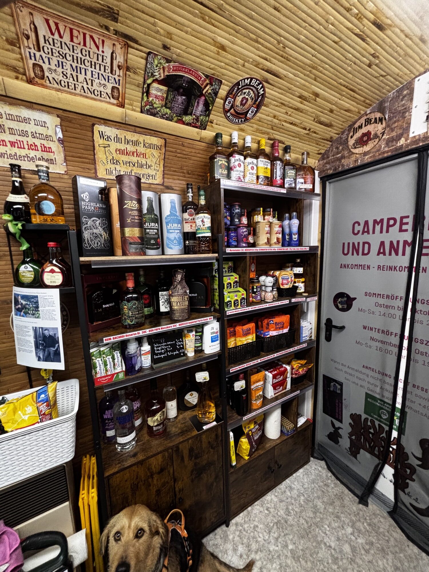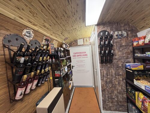 Zu diesen Zeiten könnt ihr euch bei uns direkt anmelden, euer Ticket bezahlen, einkaufen oder einfach nur mit uns quatschen, klönen, schnuddeln, ratschen, quasseln…. :-), von edlen Spirituosen bis hin zur Zahnpasta ist einiges im Angebot. Aktuell haben wir an die 300 Artikel im Shop und im Lager für euch bereit. Auch einige Campingartikel wie Fliegengitter, kleine Klapp-Campingtische und Adapter sind vorrätig ebenso wie unsere Merchandise-Artikel als kleines Andenken, also schaut einfach mal rein, wir freuen uns auf Euch.